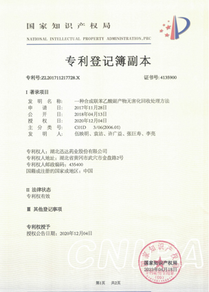 湖北迅達(dá)藥業(yè)股份有限公司是專業(yè)從事醫(yī)藥原料藥及中間體生產(chǎn)經(jīng)營的國家重點(diǎn)高新技術(shù)企業(yè),也是國家 4A 標(biāo)準(zhǔn)化良好行為企業(yè)、湖北省智能制造試點(diǎn)示范企業(yè)、湖北省國際科技合作基地、湖北省信息化與工業(yè)化融合試點(diǎn)示范企業(yè)、湖北省創(chuàng)新型企業(yè)、湖北省上市后備“金種子”企業(yè)、省級“專精特新”企業(yè)、上云標(biāo)桿企業(yè)。公司被評為湖北省醫(yī)藥工業(yè)五十強(qiáng)、湖北省醫(yī)藥行業(yè)創(chuàng)新型企業(yè)十強(qiáng)、湖北省醫(yī)藥行業(yè)出口型企業(yè)十強(qiáng)、湖北省優(yōu)秀企業(yè)、湖北省“重合同守信用”企業(yè)、湖北省模范勞動關(guān)系和諧企業(yè)、湖北知識產(chǎn)權(quán)示范企業(yè)、中國外貿(mào)出口先導(dǎo)指數(shù)樣本企業(yè)。